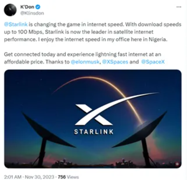 SpaceX has successfully opened up the African communications market and has gradually promoted the landing and application of Starlink in Africa. As a space-based communication network with global coverage, Starlink will play an important role in solving Africa's network access difficulties and bridging the digital divide. In February 2023, SpaceX officially provided Starlink services to Nigeria, marking Nigeria as the first African country to access Starlink services. SpaceX said that Starlink services will cover the entire territory of Nigeria, which is of great significance in filling the gap in rural Internet access, supporting national government administration and improving public education. In the same month, Rwanda launched Starlink services, using 500 unconnected schools as service pilots, and plans to access Starlink network services for 3,000 unconnected schools by 2024 through financing from the World Bank and the Export-Import Bank of China. According to statistics, as of early 2022, Rwanda's Internet penetration rate accounted for only 26.3% of the total population. Starlink will help the country expand Internet access in areas where ground Internet infrastructure is difficult and costly to install.