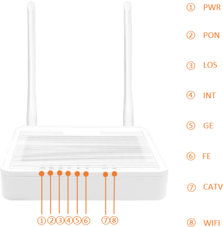 PWR / PON / LOS / GE / FE / CATV / WIFI / INT / OPT-DIG