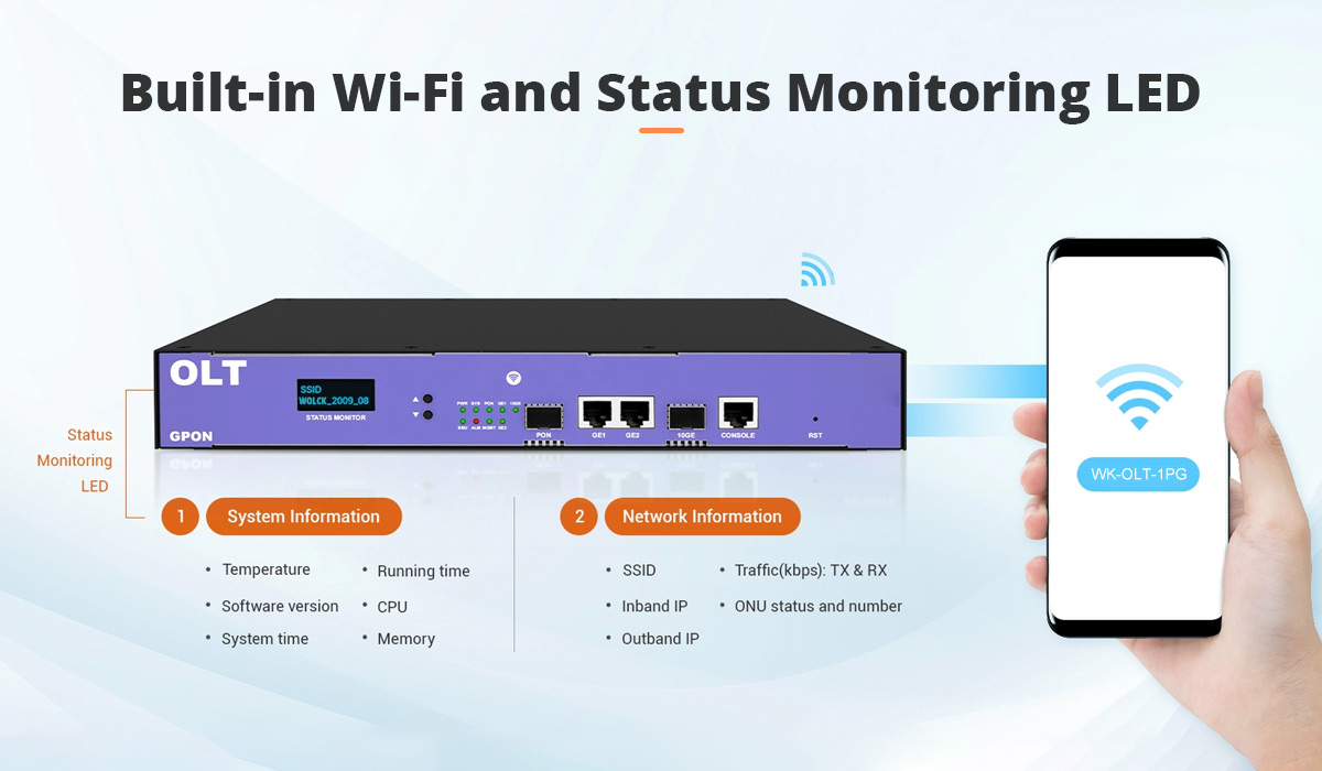 ※ Display screen can show the IP address, the number of ONU terminals, etc
